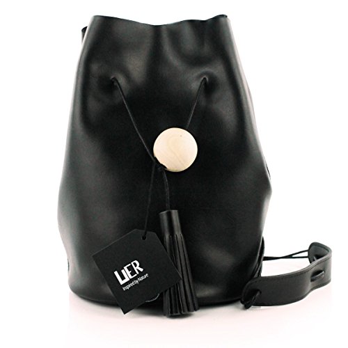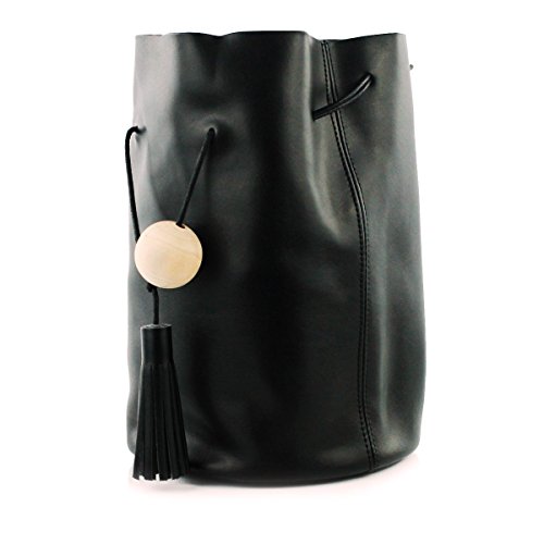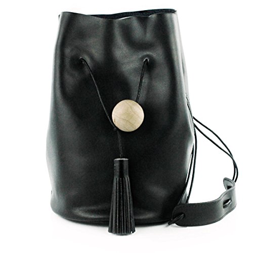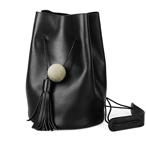 UER Women's Trend Fashion Handcrafted Cow Leather Bucket Should Bag with Tassels Ornament