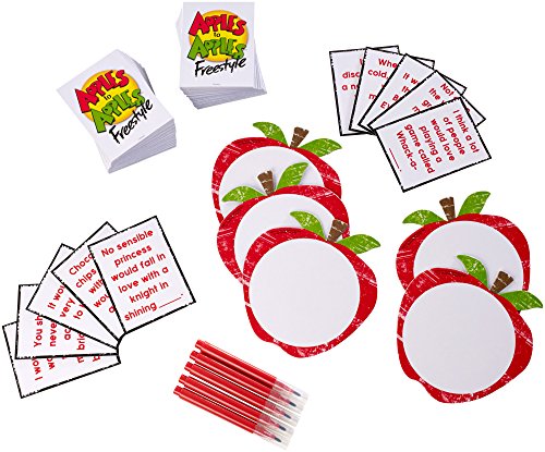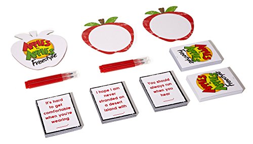 - Feature : The sky's the limit in Apples to Apples Freestyle game! / Classic Apples To Apples rules apply, but this version adds a twist by allowing players to make up their own hilarious answers! / Players write their own answers on a slate and give it to the "judge" who decides the winner of that round / The first player to win 4 rounds wins the game! / Includes 216 cards, 5 writing slates, 5 dry-erase markers and instructions