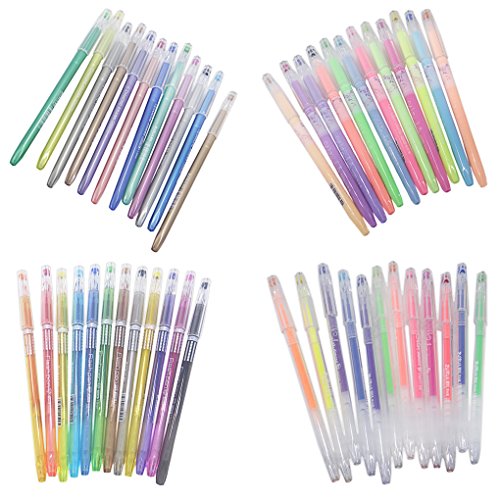 48 Colored Gel Pens with Diamond Tip Non Bleed Ink Pen Set Highlighter Pen+Glitter Pen+Pastel Pen+Metallic Pen Set Smooth Anti Skip