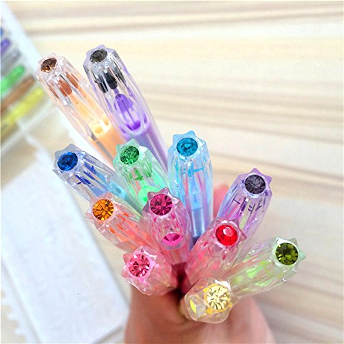 Diammond-tipped design, decorated with a colored rhinestone in the rear pen end, nice coloring gel pen set gift for artist