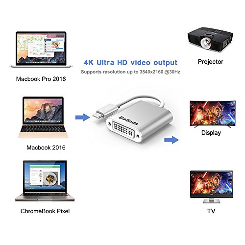 USB C TO DVI Adapter,Belinda USB 3.1 Type C (USB-C) to DVI Adapter With Aluminium Case for 2017 MacBook Pro/Samsung Galaxy S8