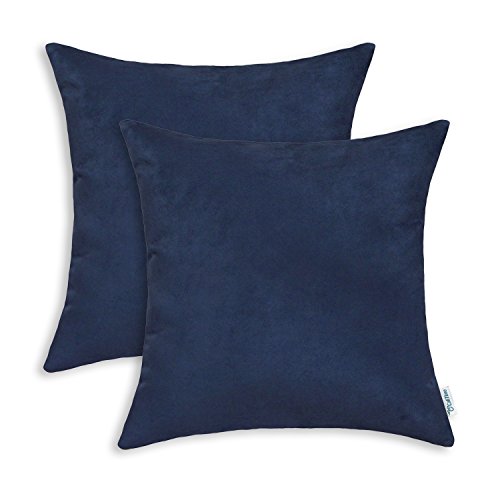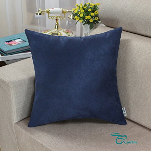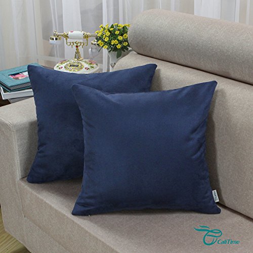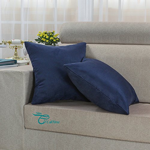 Pack 2 CaliTime Throw Pillow Covers 18 X 18 Inches, Super Comfortable Faux Suede, Navy Blue