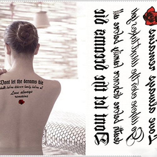 2 Sheet Temporary Tattoos Paper Lovely English Words & Rose Designs Body Art Make up for Women Fake Tattoo Sticker