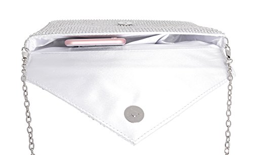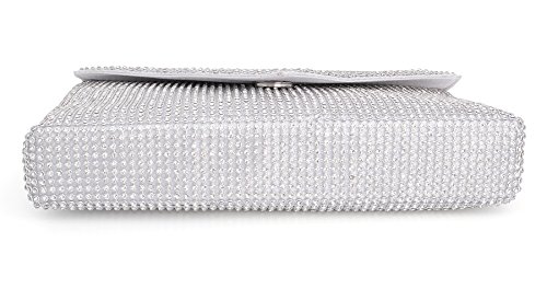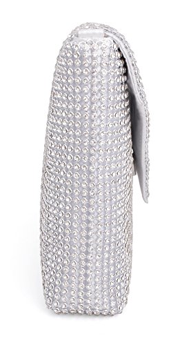 The glamorous evening party clutch features allover sparkling crystals on the front of this chic shaped clutch.