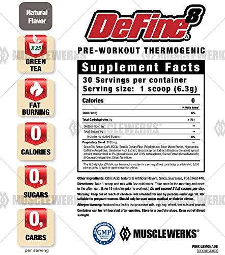 -. Title : DeFine8: Fat Burner, Pre-Workout Thermogenic - Pink Lemonade - NEW ADVANCED FORMULA, Appetite Suppressant, Boosts Metabolism & Curbs Sweet Cravings for Weight Loss. 30 Servings