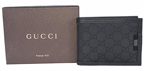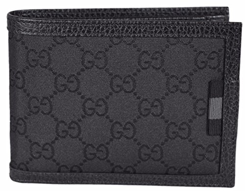 Binding : Apparel Product Description Smooth Black Nylon Grey and Black Web Tab GG Guccissima Pattern 12 Credit Card Slots 2 Long Bill Slots Fold Over Snap Close ID Window "Gucci" Embossed on Interior Leather Measures 5" x 4" Gucci Box Made in Italy Condition: New with Tags on Box What is Included: Wallet, Box, Tags and Controllato Card Color: Black 0