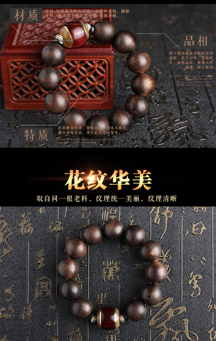 天然印尼加里曼丹沉香佛珠手串男款手链转运招财正品沉香木