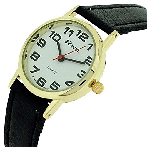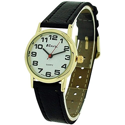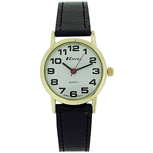 -. Title : Ravel Ladies/Womens Easy Read White Watch with Long (18cm) Black Strap and Chrome Case (R0105.06.1)