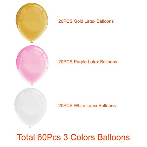 STRONG AND LONG LASTING BOLLOONS - 60 Pack of 12-inch balloons (20 pink & 20 white & 20 gold) that are made of thick latex and can be inflated with helium, filled with water or blown up with air
