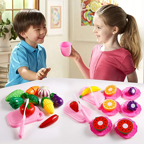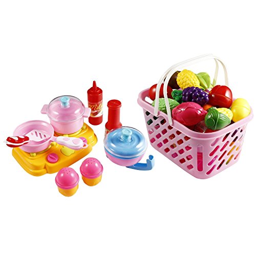 -. Feature : Safe material: Made of strong, durable and quality plastic. Whether you're giving it as a gift, shopping for a school or daycare or looking for toys for home, you're sure to be satisfied / Educational significance: Children can know all kinds of fruits, vegetables and tools, what's more, they can understand their characteristics and functions.it is portable and ideal for gifts / Great for little gardeners: High quality fruits and veggies are durable enough, playful fun while promoting healthy eating and imaginative play. Watch as these become a staple item in your child's toy collection / Attract attention: Bright and various colors can draw babies' attention. Every kid likes pretend game, that want to pretend a different family role, start to play games with your baby by cutting fruit and vegetables, they will love it / Product content: Fruits Vegetables, Plate, Fruit cutter, Cup, Pot, Spice bottle, Ketchup, Salad dressing bottle, Kettle, Fork/ Spoon/ Cutter set, Spatula, Cutting Board, Gas stove, Fruits vegetables basket