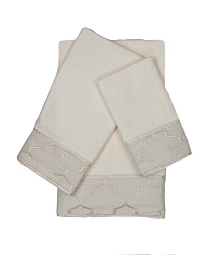 Austin Horn En Vogue Stanton Gimp 3 Piece Decorative Embellished Towel Set, Ecru