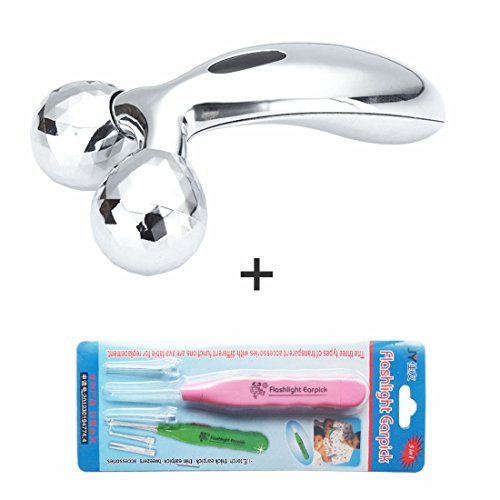 -. Title : 3D Roller Face Massager, Body Face Massager Y-Shape Sliver+LED Flash Earpick Ear Wax Pick Remover Tool (Random colors)