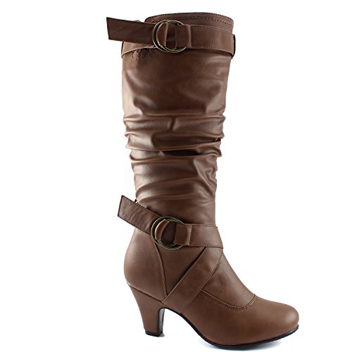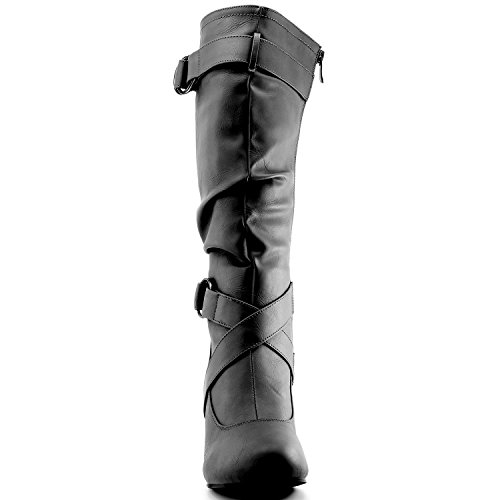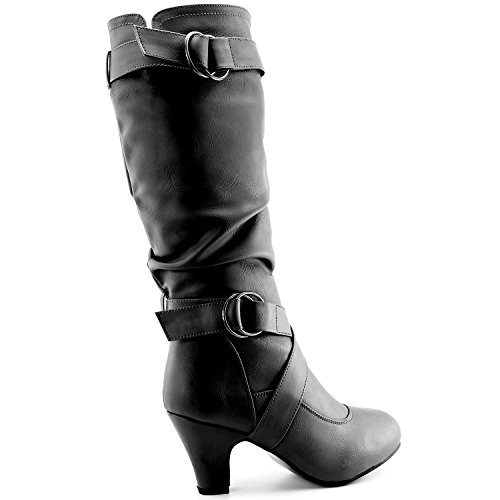 | Women's Mid Calf Winter-01 Ankle Strap Slouch Knee High Fashion Boots |