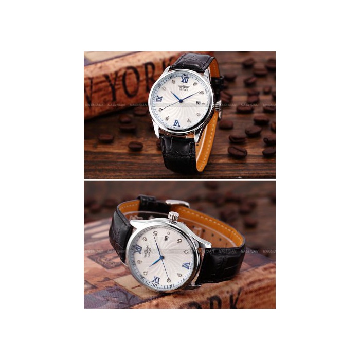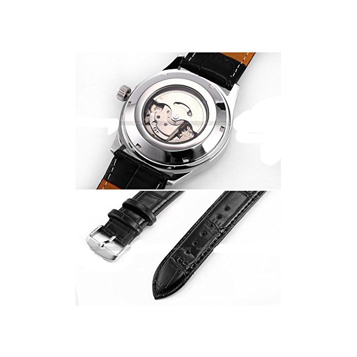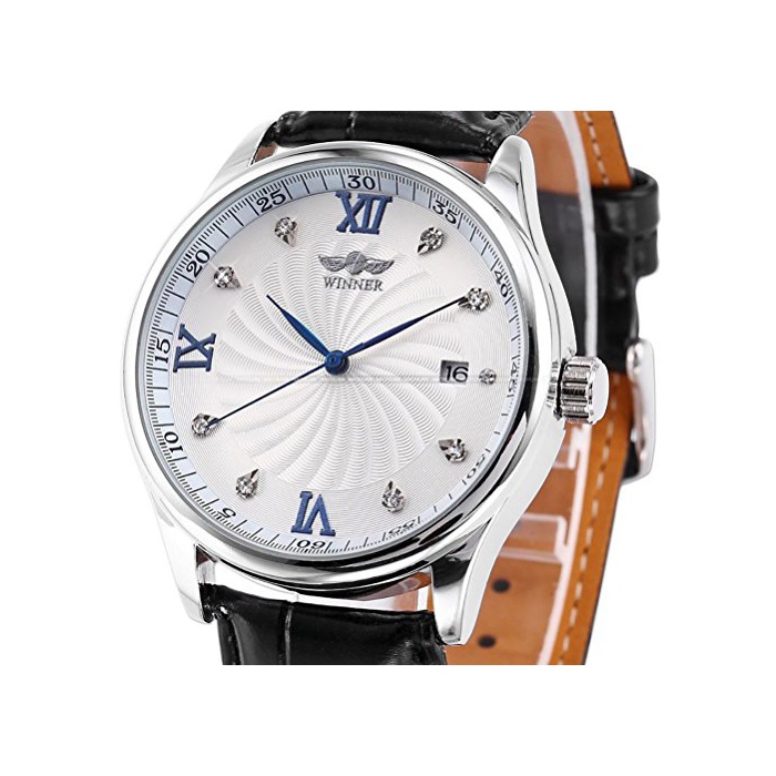GuTe Mechanical GuTe출품 엘레강트심플 싸 다이아몬드 상품 캐주얼 스타일리시 가죽 밴드 남녀 겸용 블랙 자동 감기 손목시계