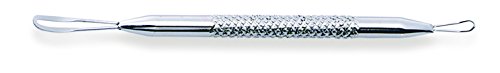 -. Feature : Feature a thin angled loop to gently roll out white heads and a flat side to press out blackheads / No slip grip design for ultimate hand-control / Guaranteed against manufacture defects / Made of solid stainless steel