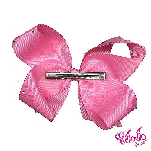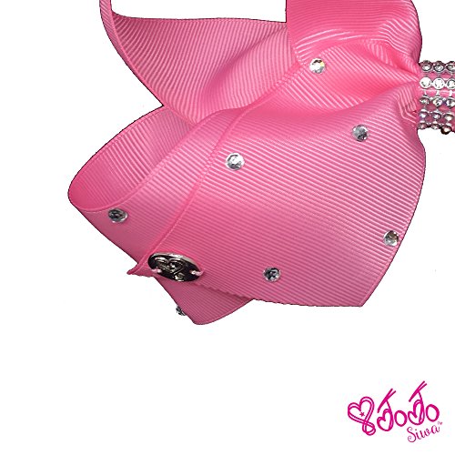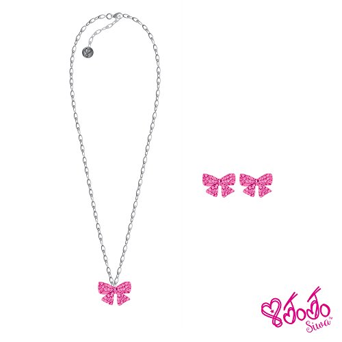 JoJo Siwa Signature Collection Pink Hair Bow With Overall Rhinestones and Pink Studded Bow Pendant Earrings and Necklace Gift Set With Sticker Patch