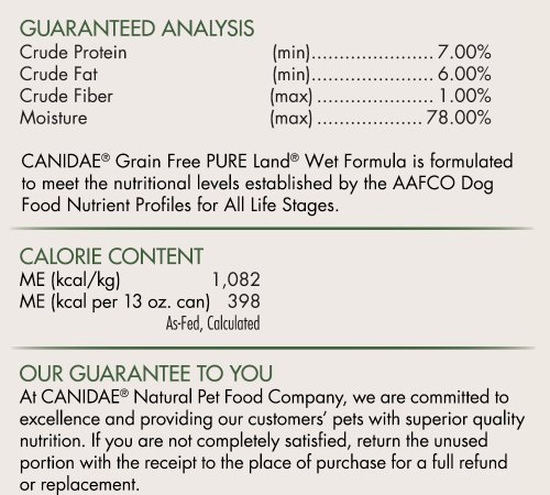 -. Title : CANIDAE Grain Free PURE Adult Dog Wet Food Lamb, Turkey & Chicken Formula, 13 oz (12-Pack)