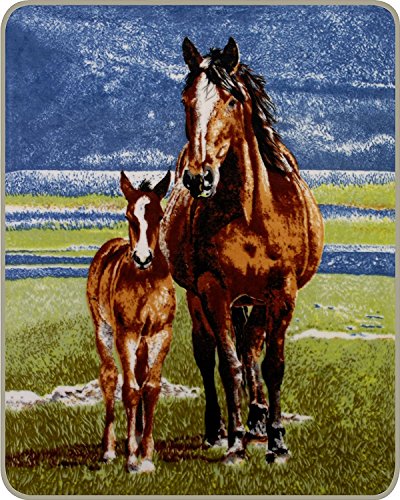 Medium Weight (Approx. 5lbs) Horse and Colt Polyester Faux Mink Blanket