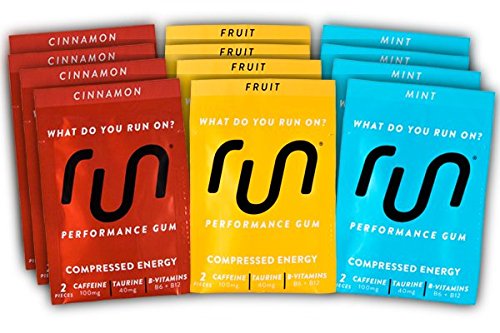 Studio : Run Gum Publisher : Run Gum Binding : Health and Beauty Product Description Try all three flavors of Run Gum with our 12-Pack Variety Box. Get the best energy boosting product on the market without worrying about choosing one flavor. Run Gum energy gum helps maximize your performance with caffeine, taurine and b-vitamins, while being zero-calorie and sugar free. One pack of Run Gum contains two pieces. The Variety Box comes with four (4) packs each of Fruit, Mint and Cinnamon. 0