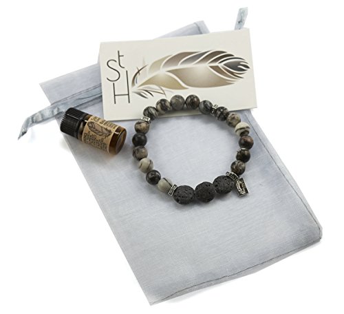 SaintH Black Webstone Lava Stone Diffuser Bracelet includes Essential Oil Sample-Small