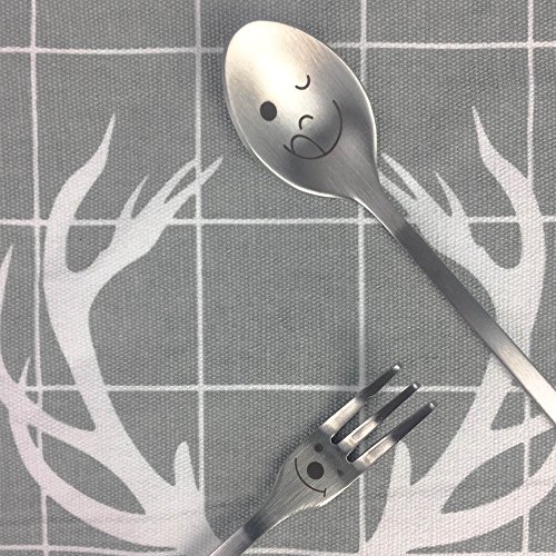 - Pack inclouds one long handle fork and one long handle spoon, with smiling face pattern
