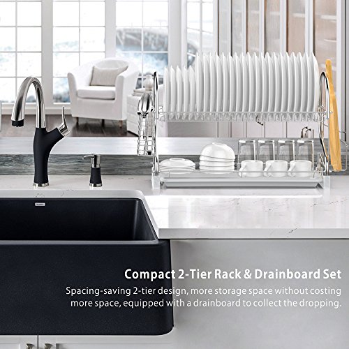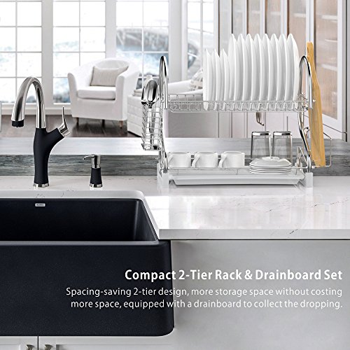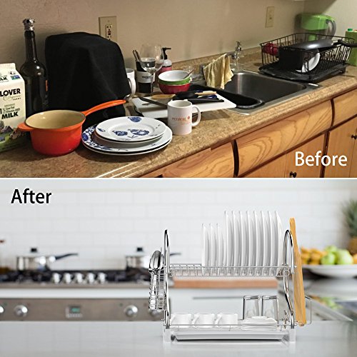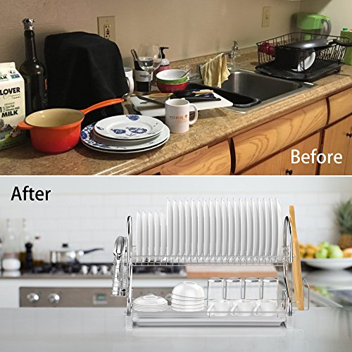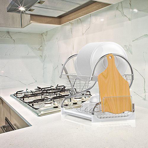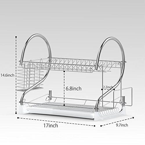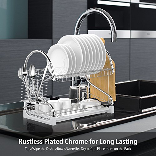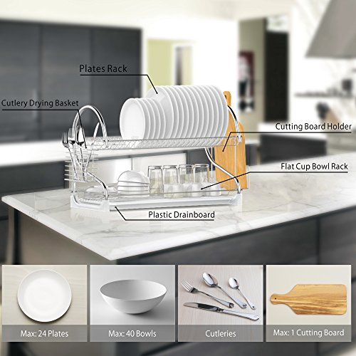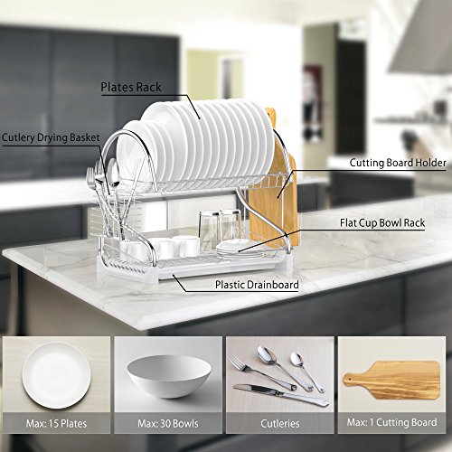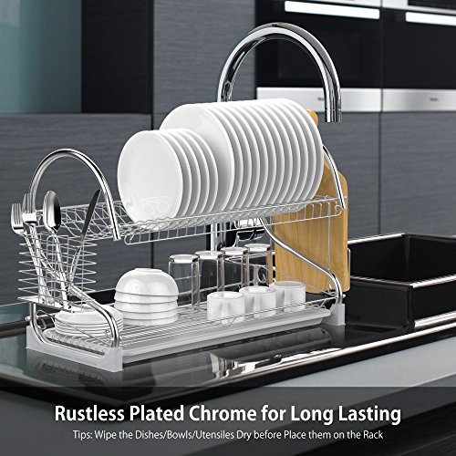 -. Title : Dish Rack, Ace Teah 2 Tier Dish Drying Rack and Drain Board with Utensil Cutting Board Holder, Plated Chrome Dish Drainer Tray for Kitchen Counter Top, Silver Dish Dryer