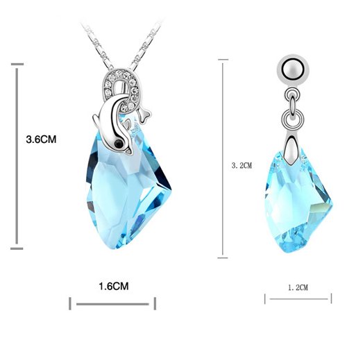 -. Feature : Necklace Length : 40+5cm, Pendant Size : 3.6×1.6cm, Earrings Size : 3.2×1.2cm, Weight : 13.30g. / This is a delicate jewelry sets with a pendant of dolphin and big blue austrian crystal. / Charm jewelry sets for women, also a sweet gift for Mothers' Day, Christmas Day, Birthday and Valentine Day. / Please avoid contact with chemicals, avoid being hit or scratched, and wipe with a soft cloth! / This product is delivered with a simple packaging.