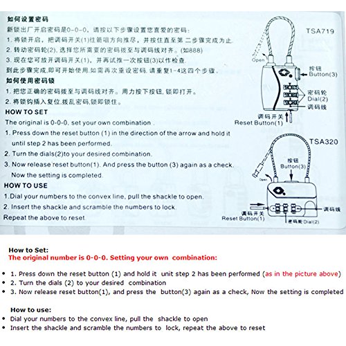 -. Feature : Travel smart combination lock. / Fashion, lightweight and convenient design. / Lock without fear of having locks cut open. / 3-digit dialing allows for different combinations. / This item is recognized by the TSA (Transportation Security Administration).
