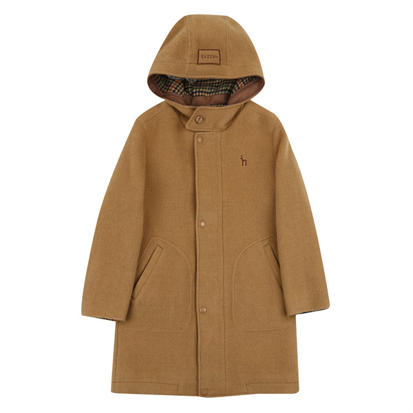 -깔끔하고 세련된 칼라감의 심플 하고 실용적인 솔리드 후드 코트