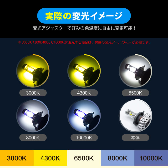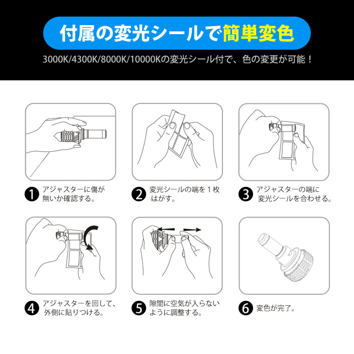 ●3000K/4300K/8000K/10000Kの変光シールを付属しています。