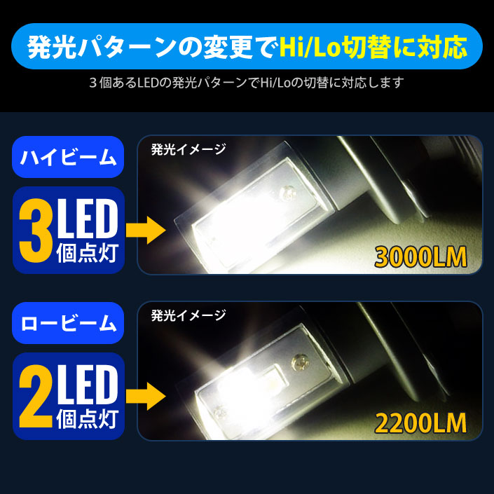 ●H4 Hi/Lo 、3000LM 、6500K ※色変更可能
