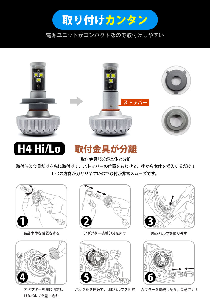 ●【 型番選択 : H4 Hi/Lo, H7, H8/H11, HB3/HB4 】,