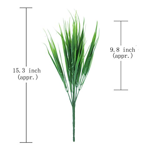 Specification: Material: Plastic,Fabric Length:15.3 inches approx Leaves Color: Green Note: Please be reminded that due to lighting effects and monitor's brightness/contrast settings etc, the color tone of the website's photo may different from the actual item's. Please take our color description for reference. Tips: When shipped, each bouquet are putting close in order to reduce space. Customers can adjust the branches to the most natural state. Package: 8 x Artificial Plastic Wheat GrassFeature
