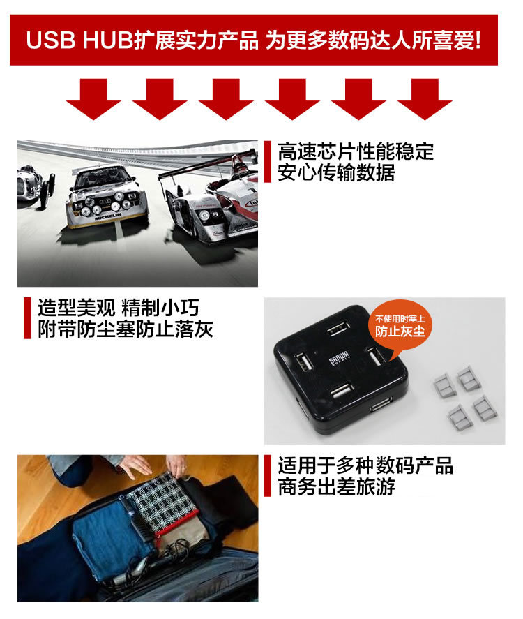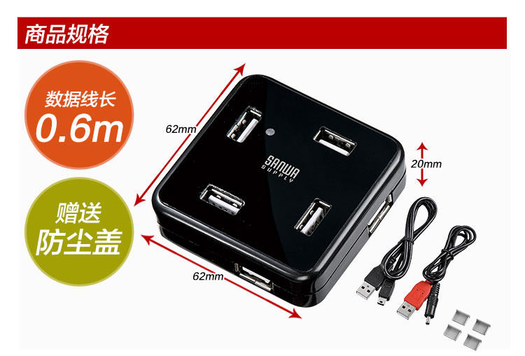 Brand: Sanwa Supply nature Interface: USB extension HUB Color Category: White Black whether the external power supply: no external power supply Item No: USB-HUB250BK