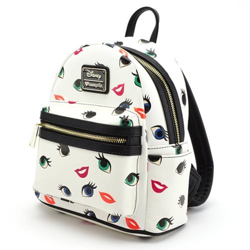 Studio : Loungefly Publisher : Loungefly Product Description This mini backpack features an all over graphic print of your favorite Disney Princess eyes and lips of Saffiano faux leather with debossed and printed details, dual reinforced padded shoulder straps, top handle, front exterior zipped pocket, two side exterior pockets, fully lined interior, and top zip closure. Measures approximately9"x10.5"x4.5" inches. 0
