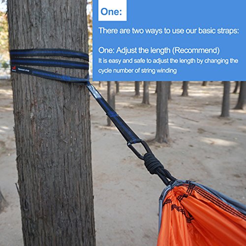 1. Larger and comfortable, our double hammock is 78 inches width and 118 inches length, our single hammock is 55 inches width and 108 inches length. It also feel very comfortable. 2. Our hammock set use hammock straps rather than rope, so our hammock set up easier and faster. 3. Our carabiners are safer and stronger. It can support 1000 pounds-force and don't have sharp edges that snag your hammock or hammock straps. 4. If you don't love it, contact us and we'll refund your money in 5 hours, you can still keep the hammock. This is our crazy promise, we don't lie.