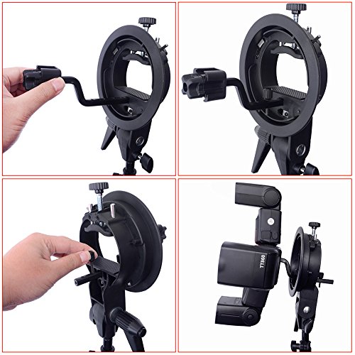 - Feature : S-Type Bracket & Four Speedlite Adapter Kit / (1)S-Type Bracket Holder with Elinchrom Mount / (1) Flexible Universal Four Speedlite Adapter