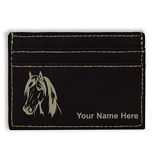 -. Binding : Apparel -. Brand : SkunkWerkz -. ClothingSize : Medium -. Color : Black -. Department : mens -. EAN : 0655222572240 -. Feature : The Money Clip Wallet is laser engraved with the image that you see in the photo. / Your name or personalized message will be engraved on the wallet for free. / Synthetic leather construction. Includes space for 3 credit cards. / You may have one line of engraved text - 20 characters maximum. / Click the "Customize Now" button to begin customizing your wallet. -. ProductGroup : Apparel -. ProductTypeName : ACCESSORY -. Size : Medium -. Title : Money Clip Wallet, Horse Head 1, Personalized Engraving Included (Black) -. UPC : 655222572240