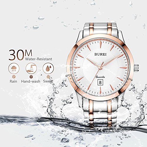 Perfect Package with Bonus: This BUREI watch is well packaged in a stylish and luxurious leather paper watch box. A free link remover is provided in the box. It will be a perfect gift for your relatives and friends. Size :Watch strap: Length:184 mm; Width: 16 mm Thickness :7.6 mm; Watch case : 30 mm.