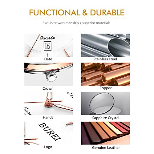 Easy to Adjust Strap Length: A free link remover is provided with this watch. You can adjust the band length at home by yourself after reading instruction. Imported Japanese Movement and battery are used in this BUREI women's wrist watch, this watch will serve for more than 2 years.
