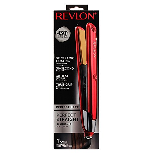 Revlon Hair Tools is dedicated to helping women achieve beautiful hair they'll love! Whether women desire gorgeous blowouts, big enviable waves, striking straight locks, or the perfect fashion accessory to complete the look, Revlon has the styling tools you desire. Our Perfect Heat line, with triple ceramic coating, is designed to provide you with the optimal heat and ceramic coating for less damage and perfect styling level. ABOUT THE PRODUCT: The perfect hair styling tool for creating smooth, awe-inspiring looks, the Revlon 3X Ceramic Smooth Glide Flat Iron features 3 layers of ceramic for fast styling with fewer passes. The easy-glide ceramic coating helps reduce damage from over-styling with even heat distribution that penetrates hair quickly and styles from the inside out for the latest perfect shiny looks. The 30 heat settings provide precise styling control with temperatures up to 430°F of professional high heat to lock in styles quickly for all hair types. True Grip plates eliminate gaps and make it easy to get close to hair roots for a smooth glide and shiny, super-sleek results while the Textured Cool Tip offers added styling comfort and control.Feature