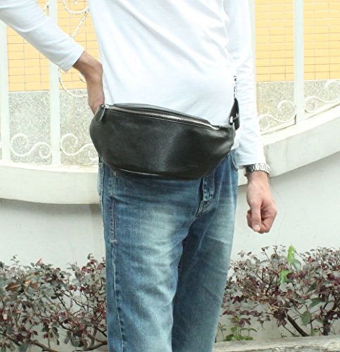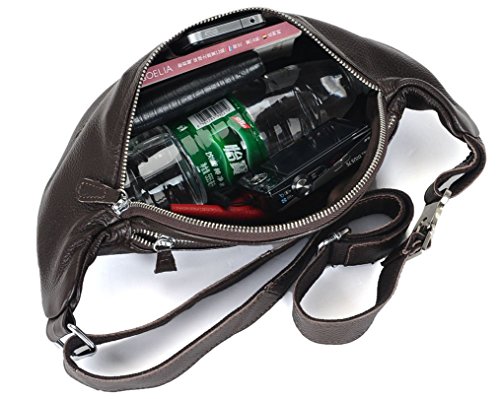 -. Brand : Modelshow -. Department : mens -. Feature : Made of cowhide leather,durable metal buckle / Main section with a arc zipper closure, interior features cotton linings / Adjustable waist strap with push-in buckle, fit people with waist size from 39.5"-52.6" / Leather slider with pull, silver tone hardware / Product Dimensions:30 x 16 cm -. PackageQuantity : 1 -. ProductGroup : Apparel -. ProductTypeName : LAGE -. Size : M -. Title : Modelshow Men's Genuine Leather Leisuring Casual Dual Use Waist Bag Chest Bag Packs