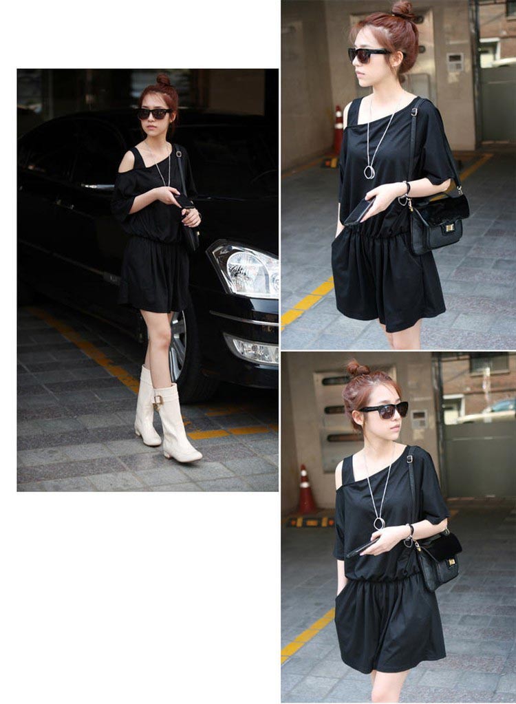 右肩がオフショルダー・5分袖・ショートパンツのジャンプスーツ♪