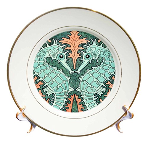 3dRose cp_219067_1 Gorgeous Art Nouveau Seahorse Illustration in Pink and Blue Porcelain Plate, 8"