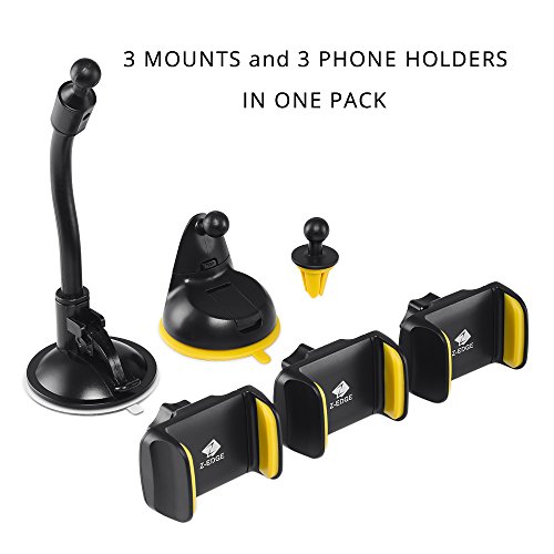 Z-Edge : From Zero to Hero Z-Edge 3-in-1 Mobile Phone Car Mount ---3 MOUNTS and 3 PHONE HOLDERS IN ONE Pack Compatible with most phones With the expandable holder arms from 2 inches to 3.3 inches , The holder is compatible with most phones such as iPhone 6s, 6s Plus, 6, 6 Plus, 5S, Galaxy S7, S7 Edge, S6, S6 Edge, S5 and other phones.