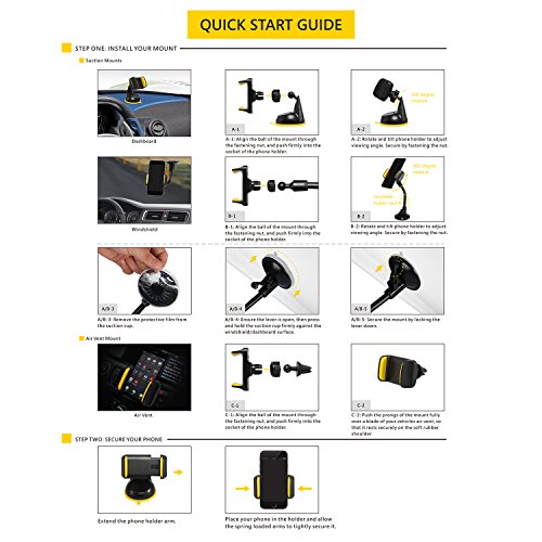 3-in-1 Smart design Easy usage of either a suction cup mount or an air vent mount, providing the flexible choices of viewing your phone while driving at multiple locations such as the windshield, dashboard or air vent.