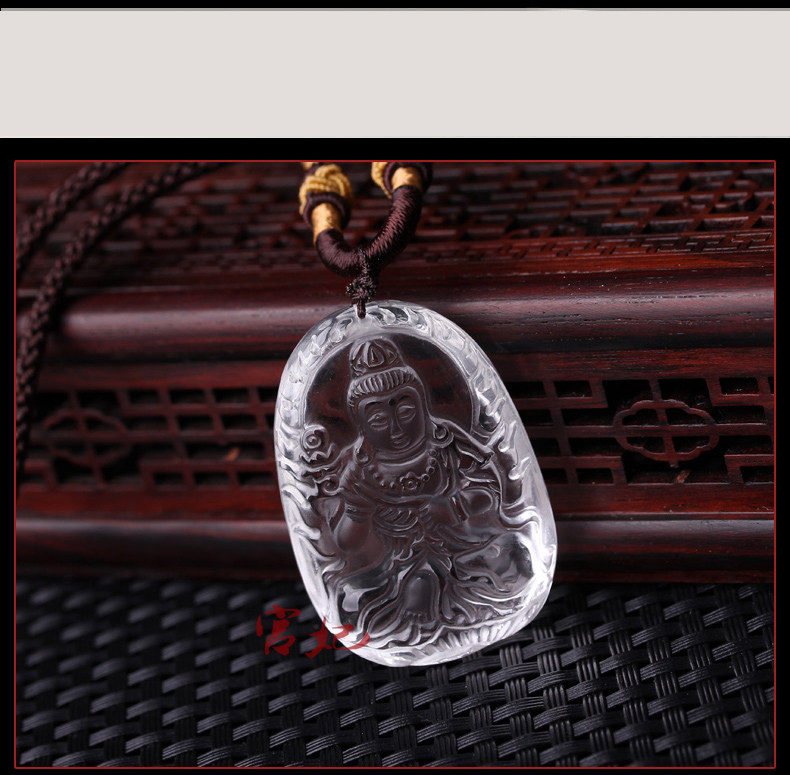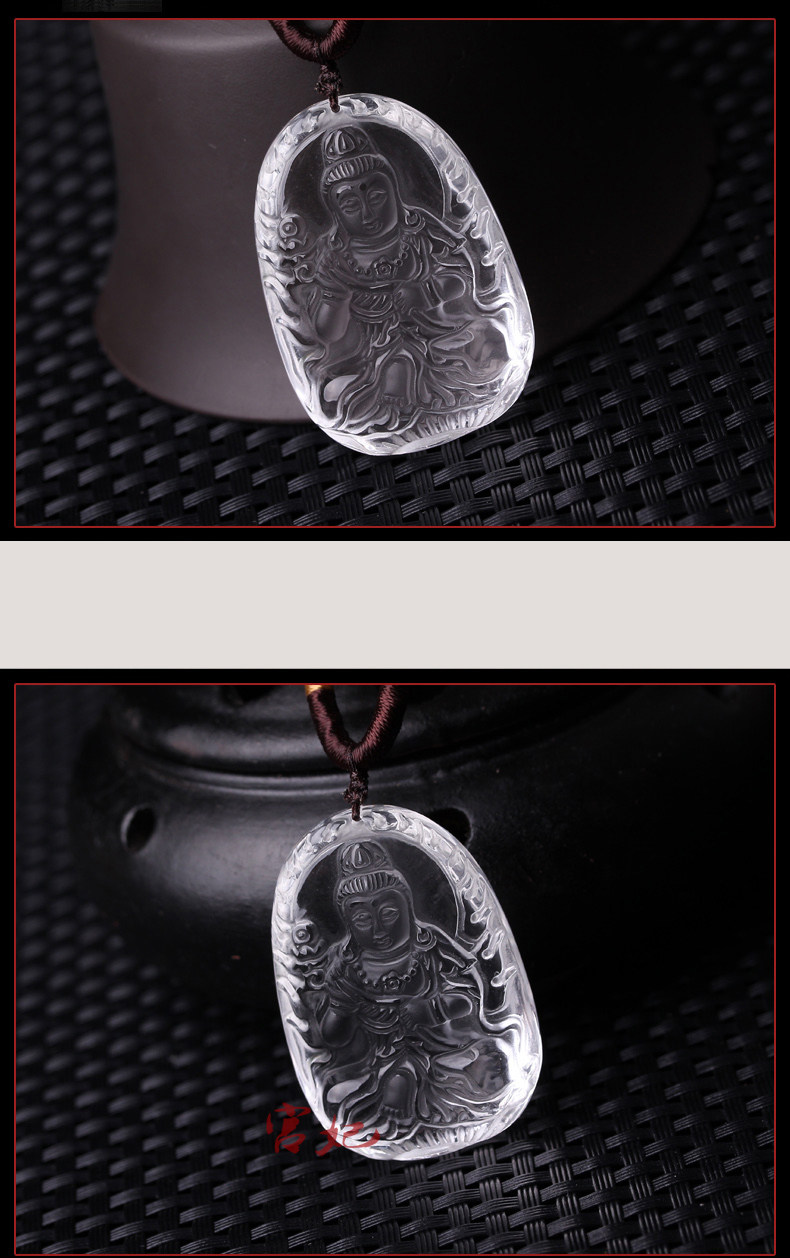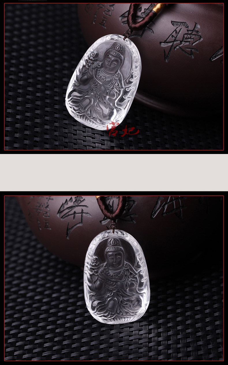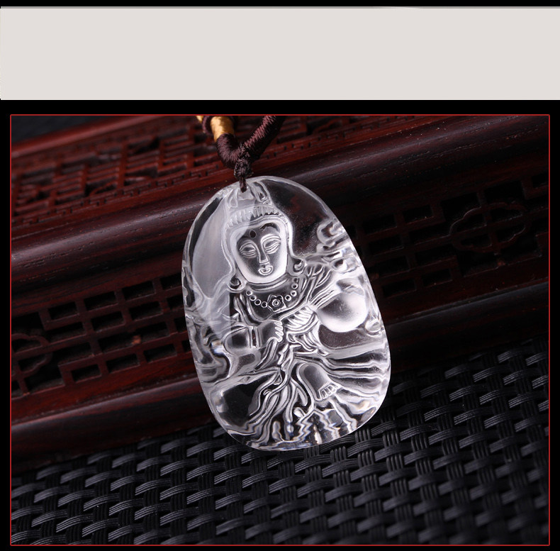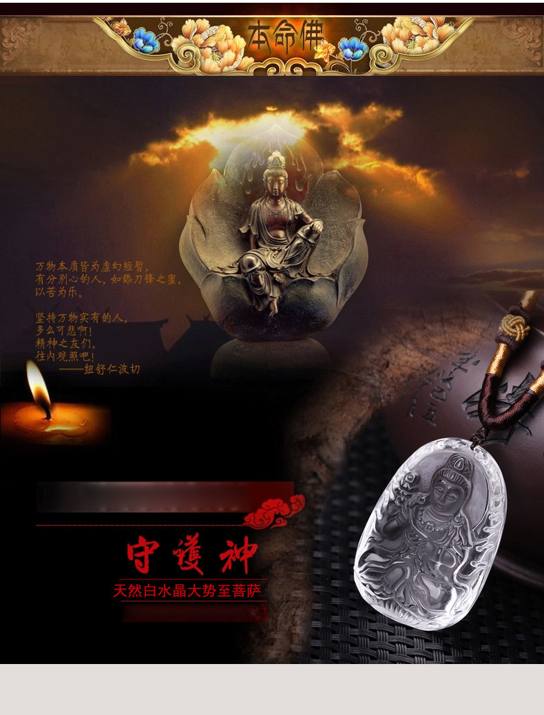 开光天然白水晶大势至菩萨守护神生肖属马本命佛吊坠男女款项链