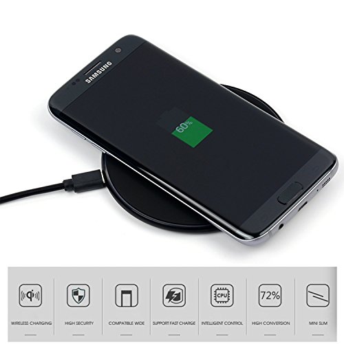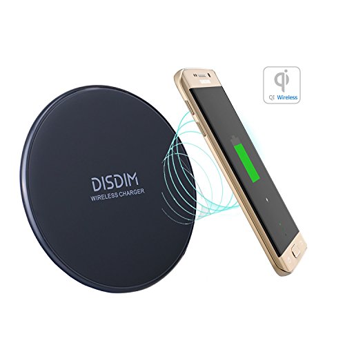 Intelligent Wireless Charger, DISDIM Ultra-Thin Qi Wireless Charging Pad for Samsung S8 / S8 Plus / S7 / S7 Edge, Galaxy Note 5, Galaxy S6/S6 Edge/Edge+ and All Qi-Enabled Devices (Black)