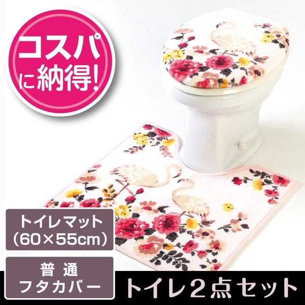 トイレ空間を洗練した空間にしてくれるトイレマットセットです! 超お買い得な、トイレカバー普通(O・U型)タイプの2点セットです。 【セット内容】 トイレ足元マット、普通フタカバー ■材質 トイレ足元マット:アクリル100% 普通フタカバー:アクリル100% ■サイズ 足元マット:約55×60cm ■特長/仕様 マットは”すべりにくい加工”済み フタカバーの種類は大きく分けて2種類あります。 この商品は、卵型の普通フタ専用のカバーです。 洗浄暖房型ではご使用できません。