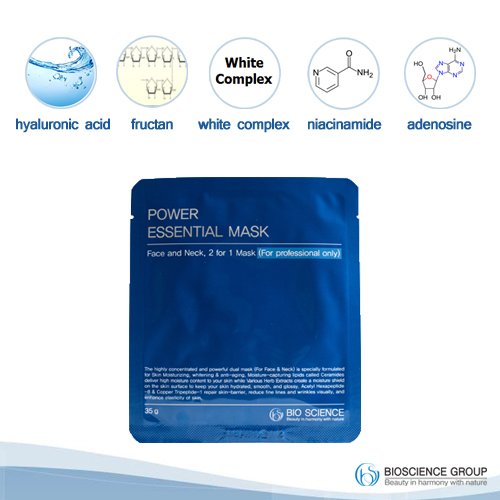 Bio Science Power Essential Mask, Face and Neck 2 in 1 Mask Sheet (5 Sheets a Pack)